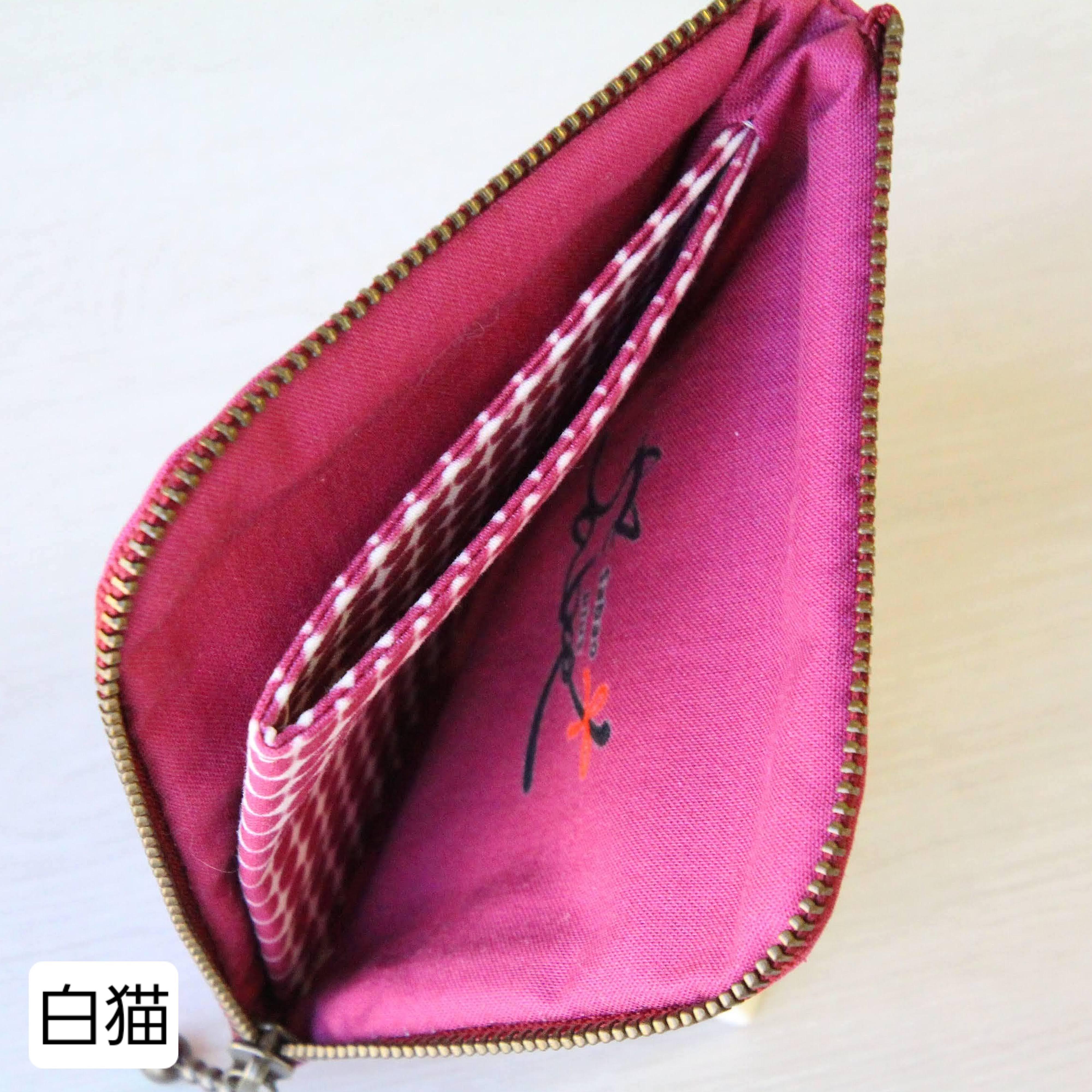 11cm角、L字ファスナーのペタンコ財布です。